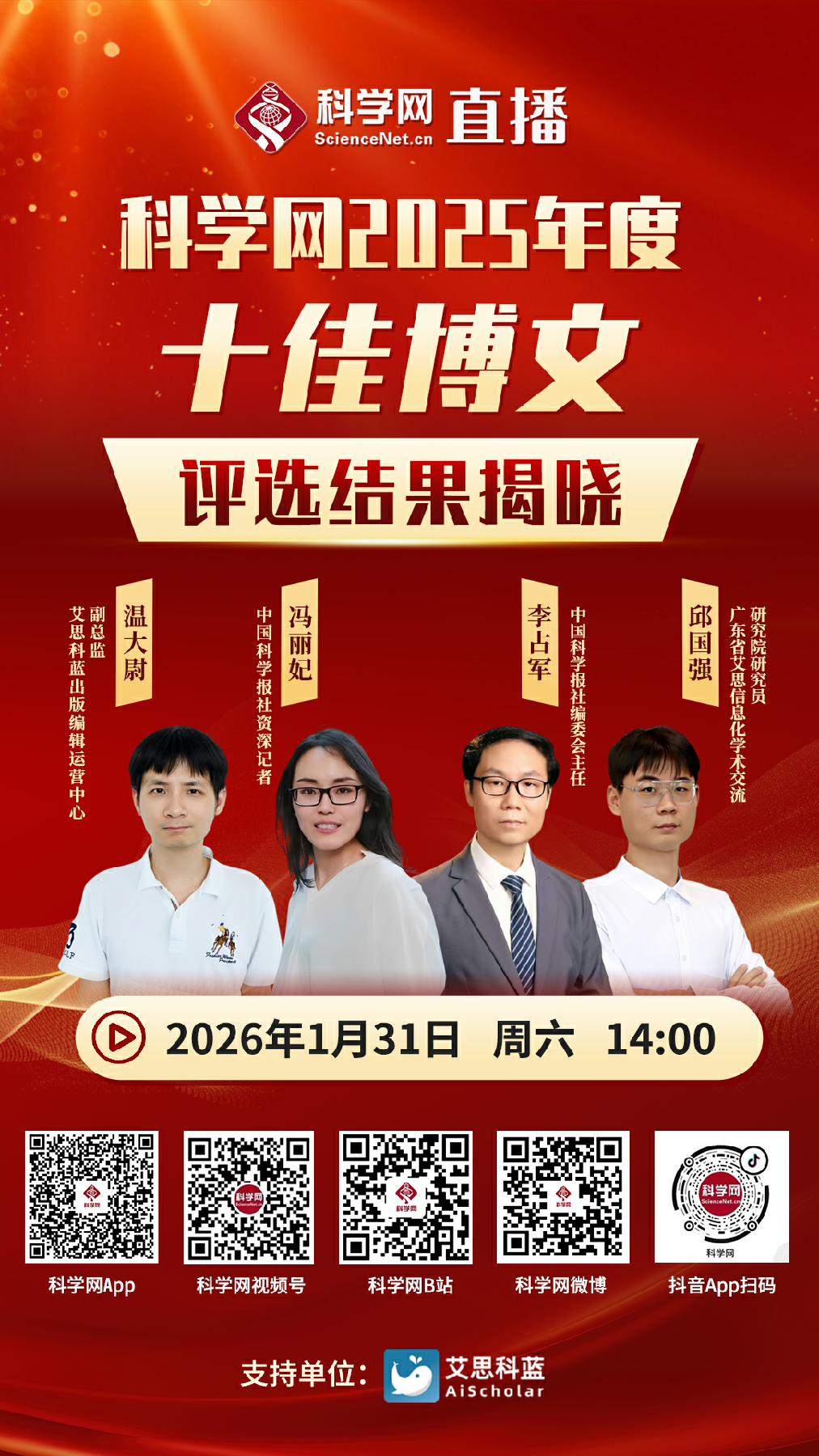 ·31日直播 | 科学网邀您一起揭晓2025年度十佳博文 科学网编辑部